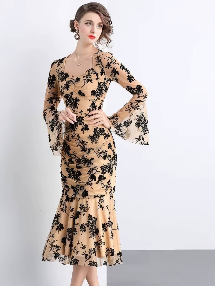 - Longueur de la robe : Robe mi-longue (longueur midi, sous le genou)