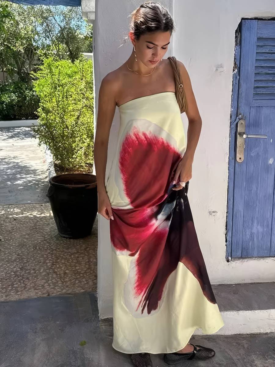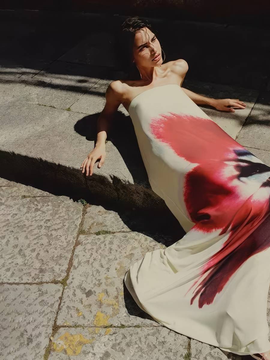 - Matière : Polyester fluide, aspect satiné avec imprimé bicolore effet artistique