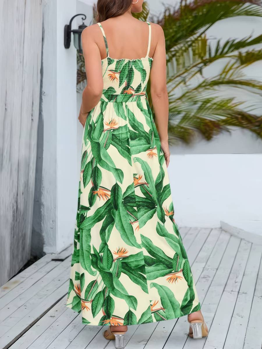 - Matière : Polyester léger et fluide avec imprimé végétal