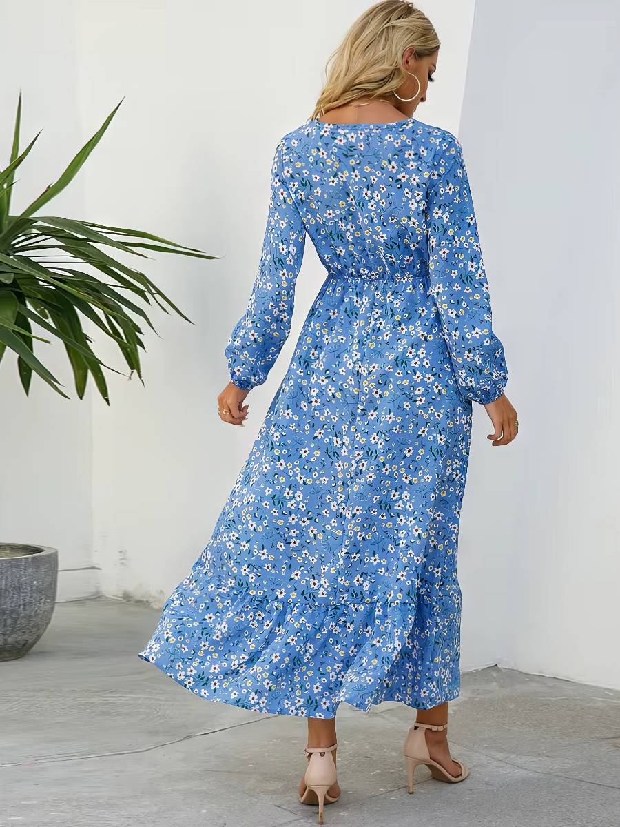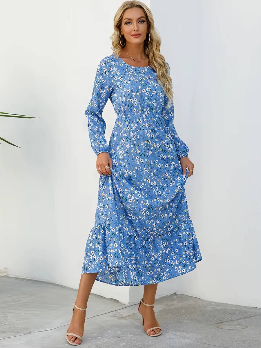 Robe Blanc Bleu Longue Style Bohème