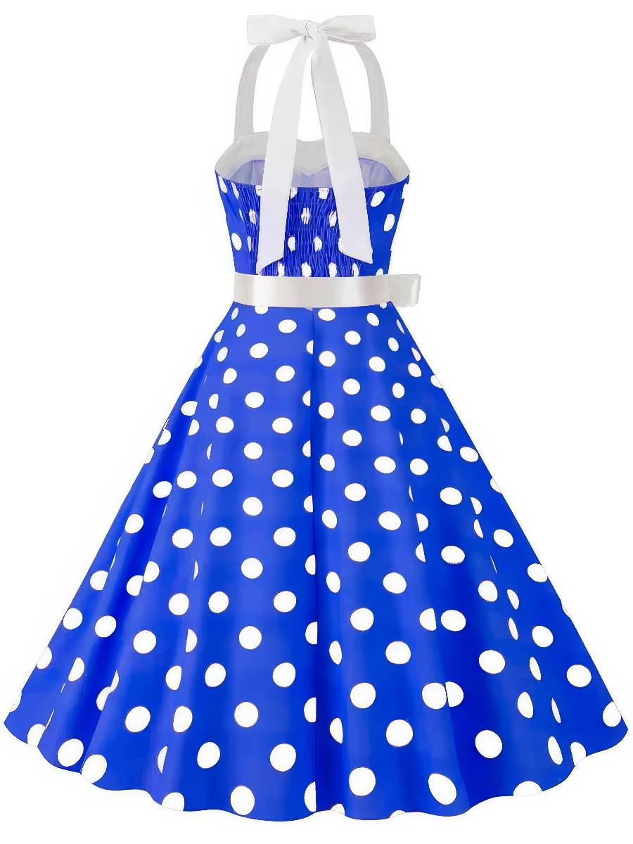 Robe Blanc Et Bleu À Pois Style Rétro Pin-Up