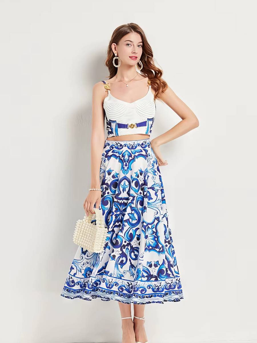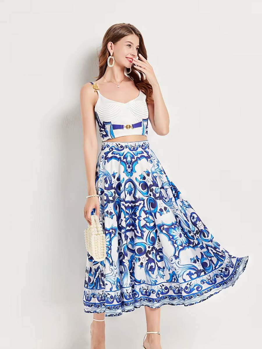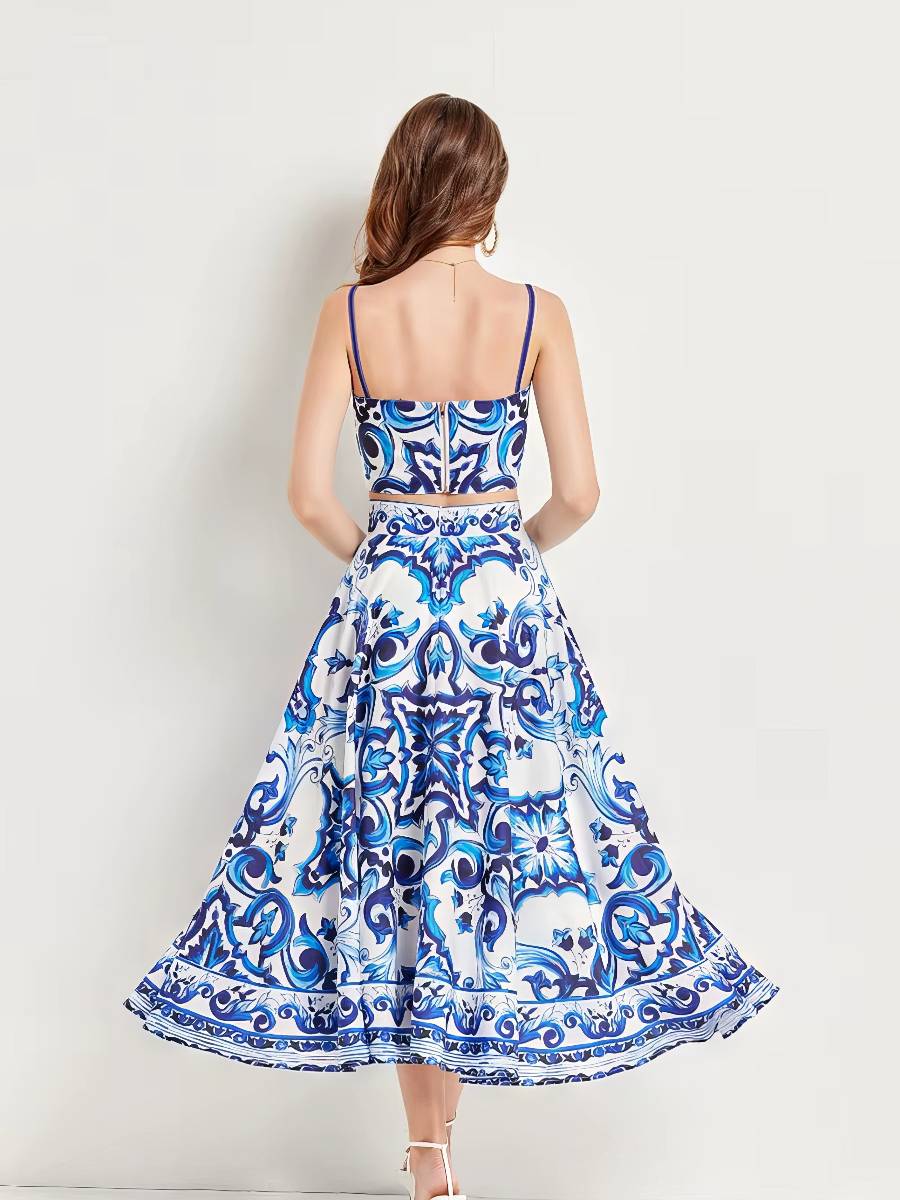 • Coupe de la robe : Jupe évasée style patineuse/flared + top court ajusté