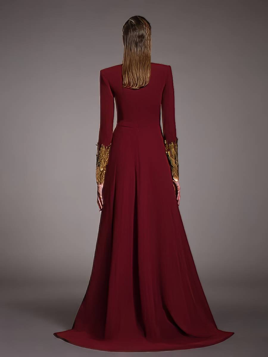 - Manches : Manches longues ajustées avec ornements dorés aux poignets
