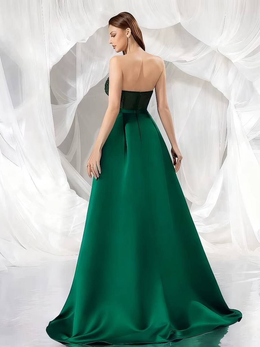 - Coupe de la robe : Coupe sirène ajustée au buste avec jupe longue fluide et fendue