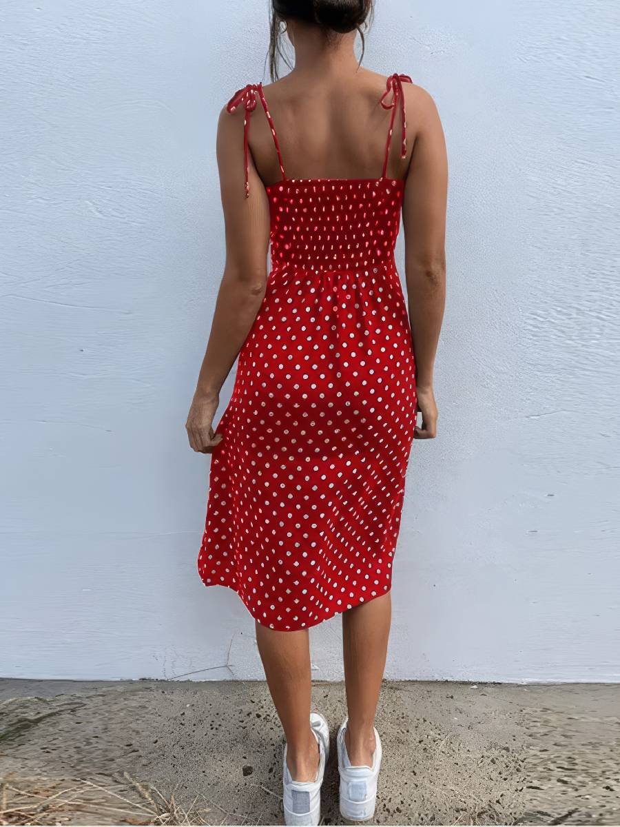 Soyez le premier à laisser votre avis sur “Robe Rouge Et Blanc À Pois Midi Fendue Esprit Été”