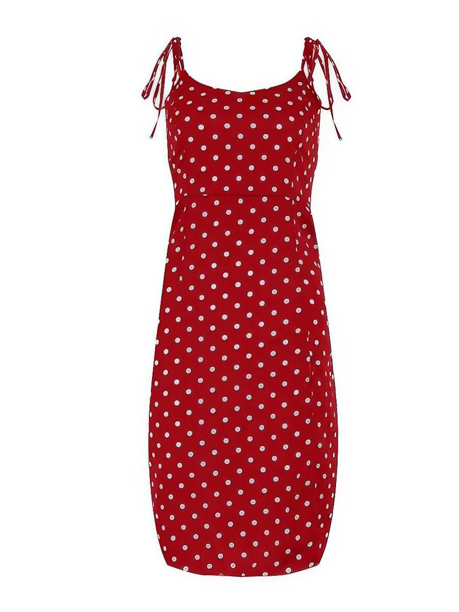 Robe Rouge Et Blanc À Pois Midi Fendue Esprit Été