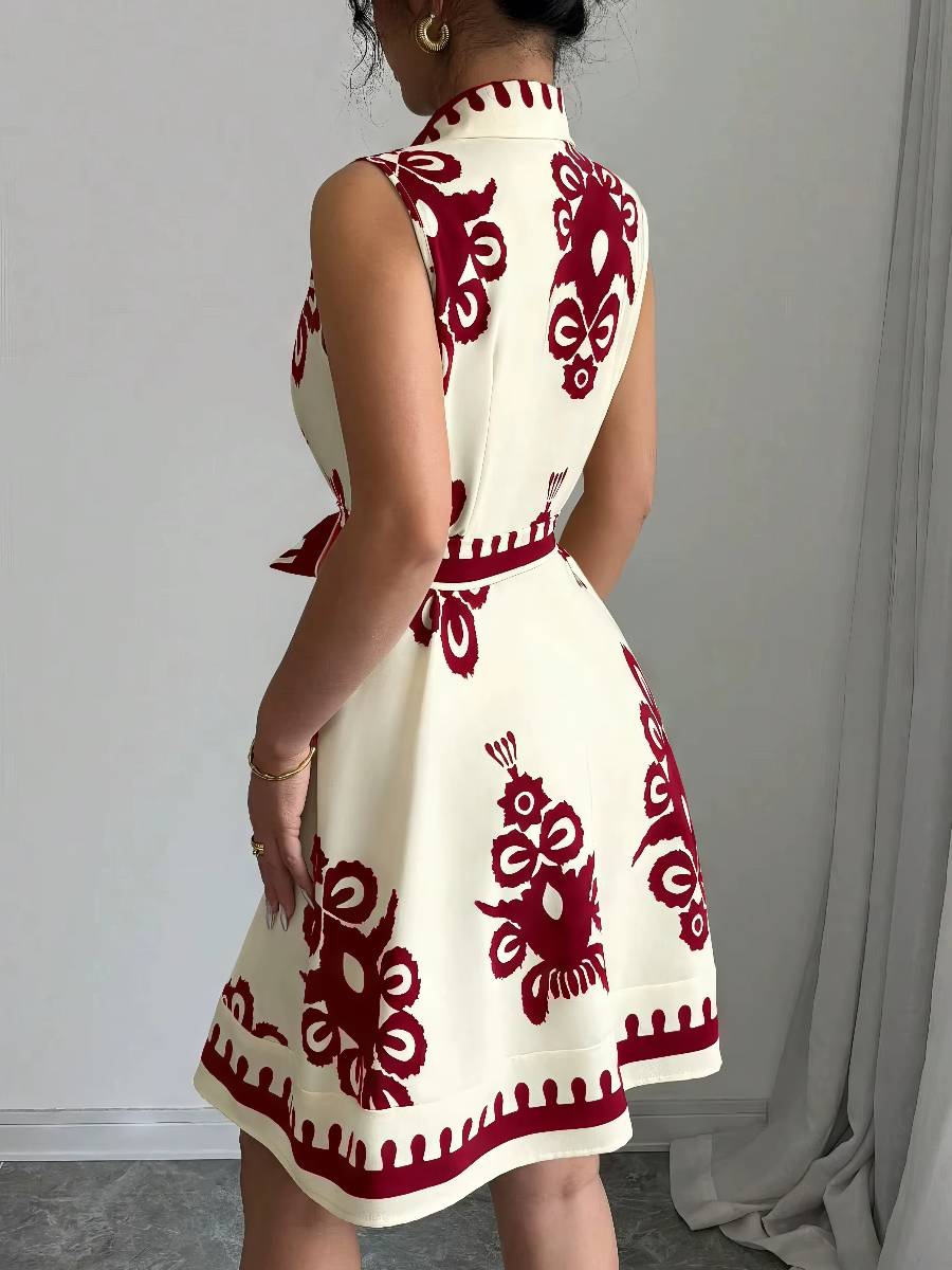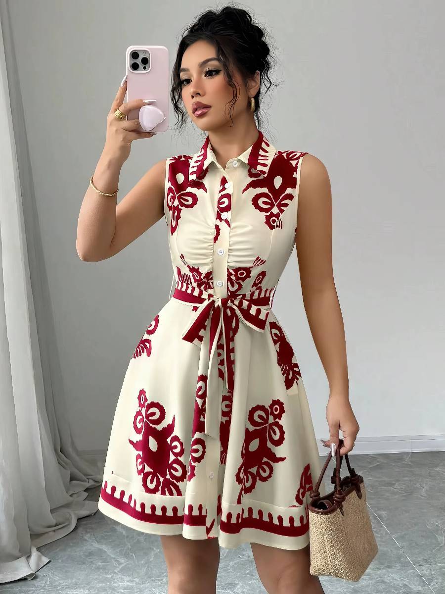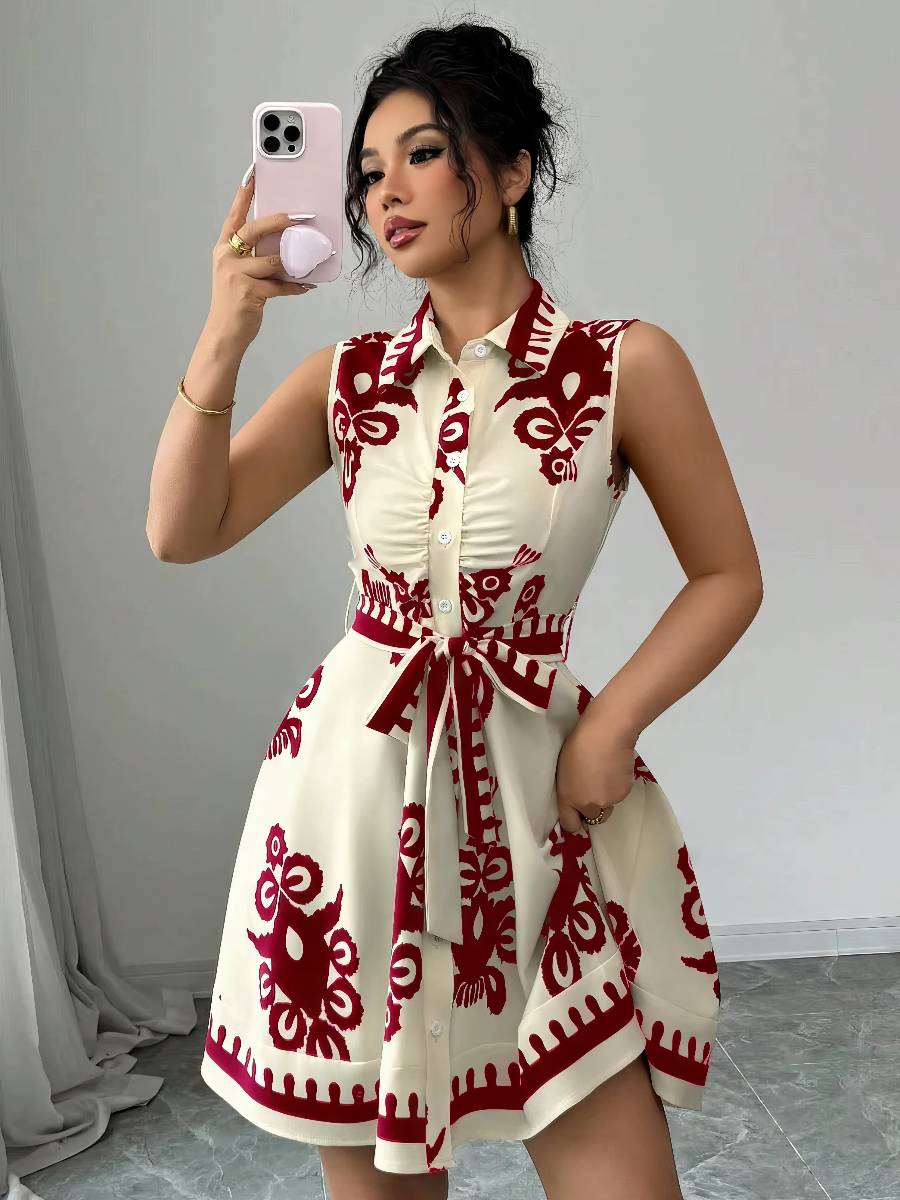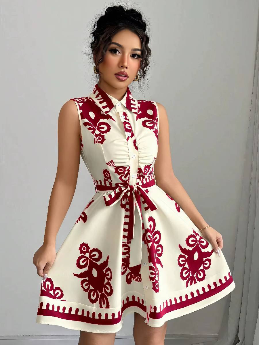 Robe Rouge Et Blanc Bicolore Ceinturée Style Chic