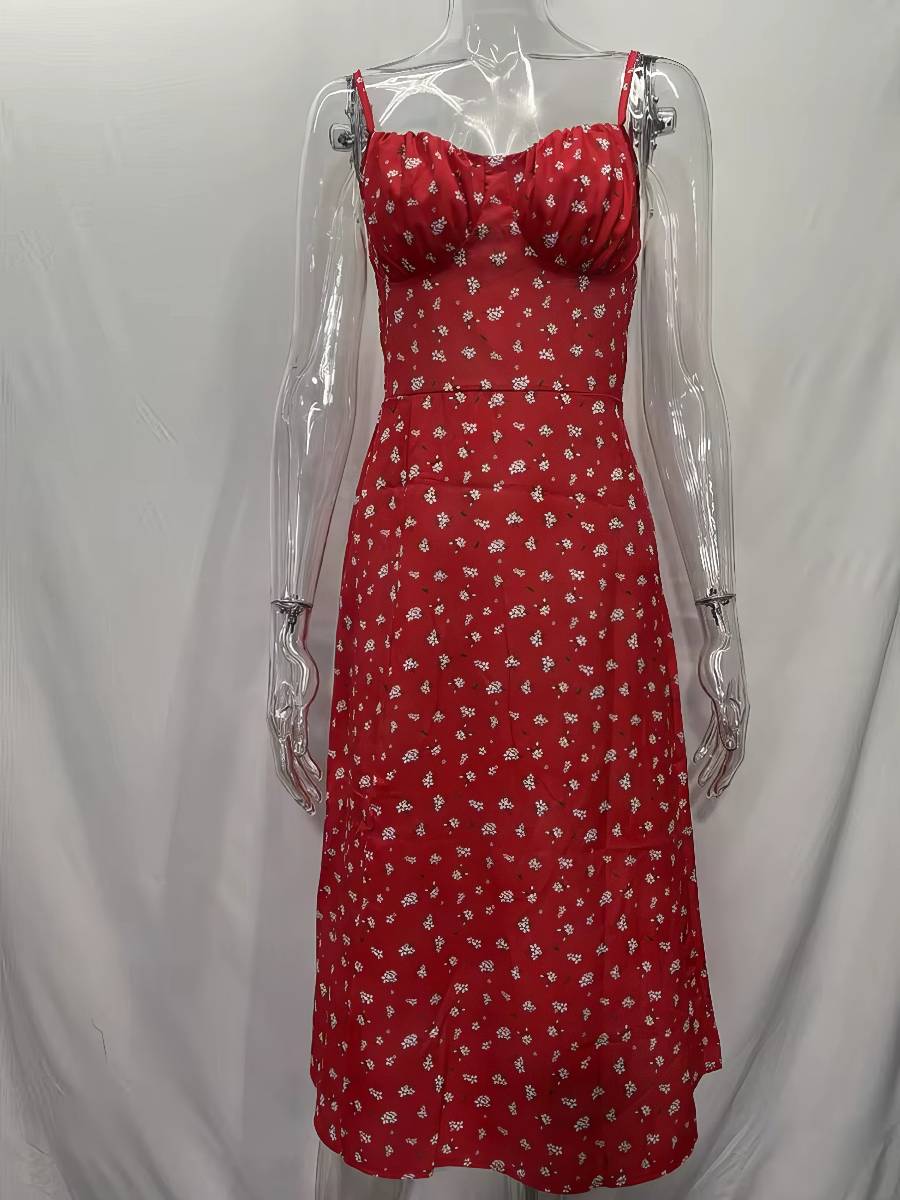 Robe Rouge Et Blanc Bicolore Midi Fente Élégante Femme